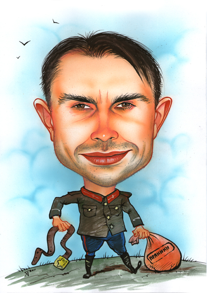Кнут и пряник, смех и слезы Каждый день шипы и розыЗато нам, сослуживцам, с таким командиром не скучно. Может быть страшно, весело, но скучно – никогда! За его своеобразный темперамент с прошедшими вековую проверку методами руководства, всем дружно боящимся коллективом подарим ему на 23 февраля непроверенный подарок - шарж. Лелея в душе неумирающую надежду, получать от командира исключительно пряники.
